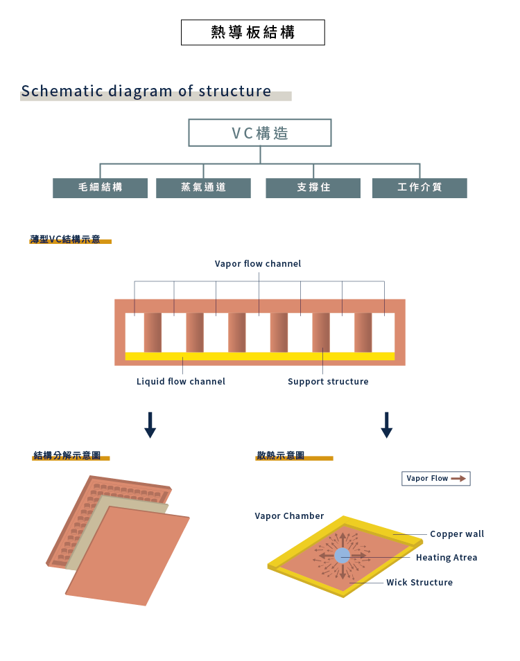 VC熱導板(Vapor Chamber): 為二維(點對面)熱擴散和熱傳輸。